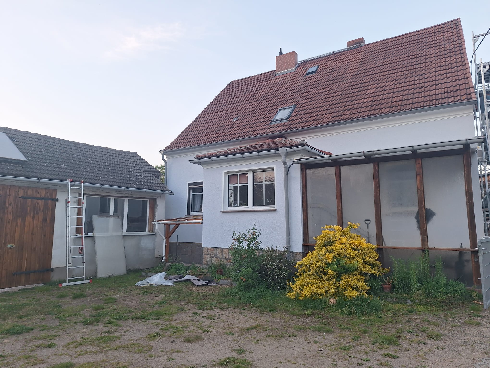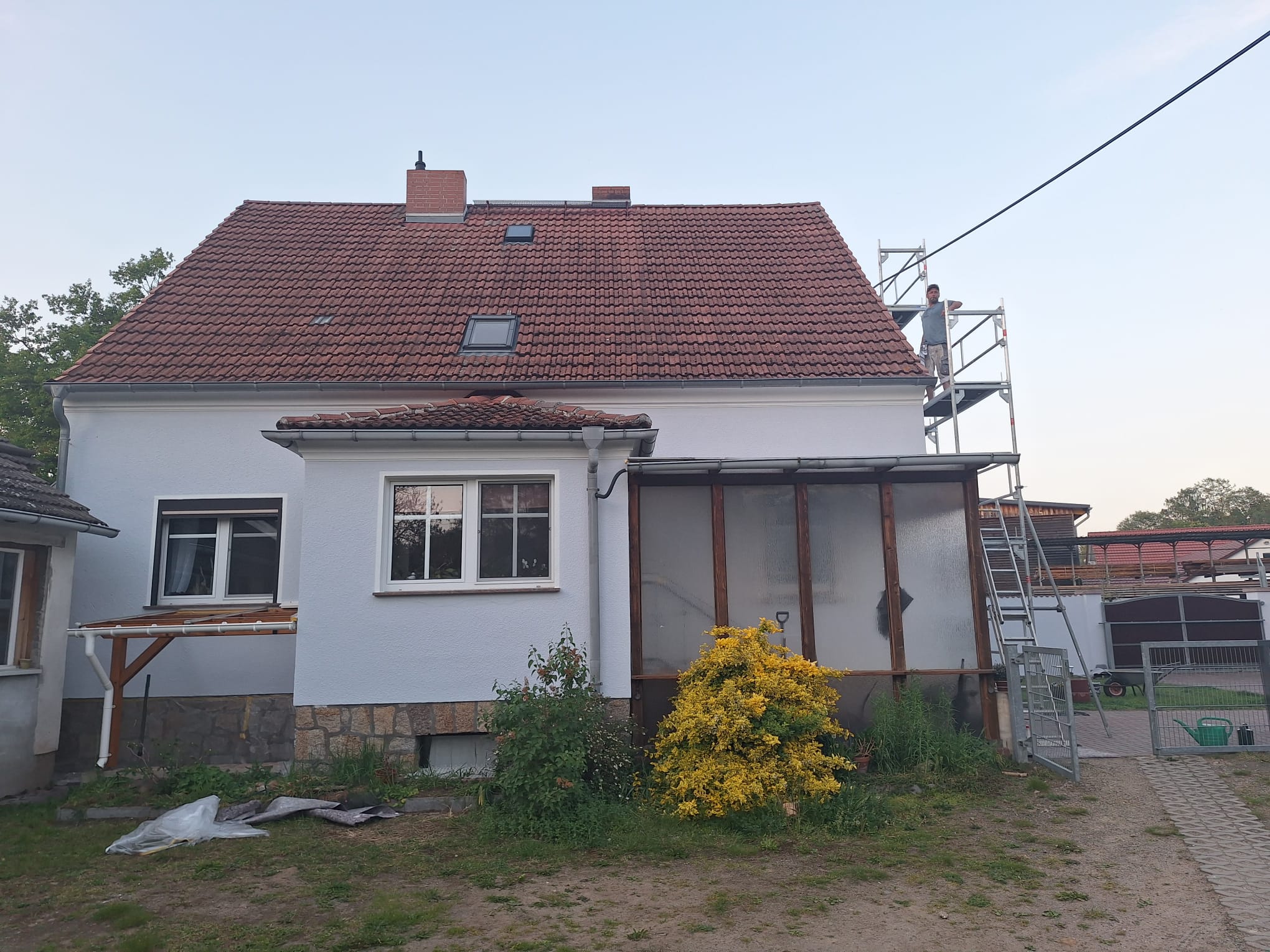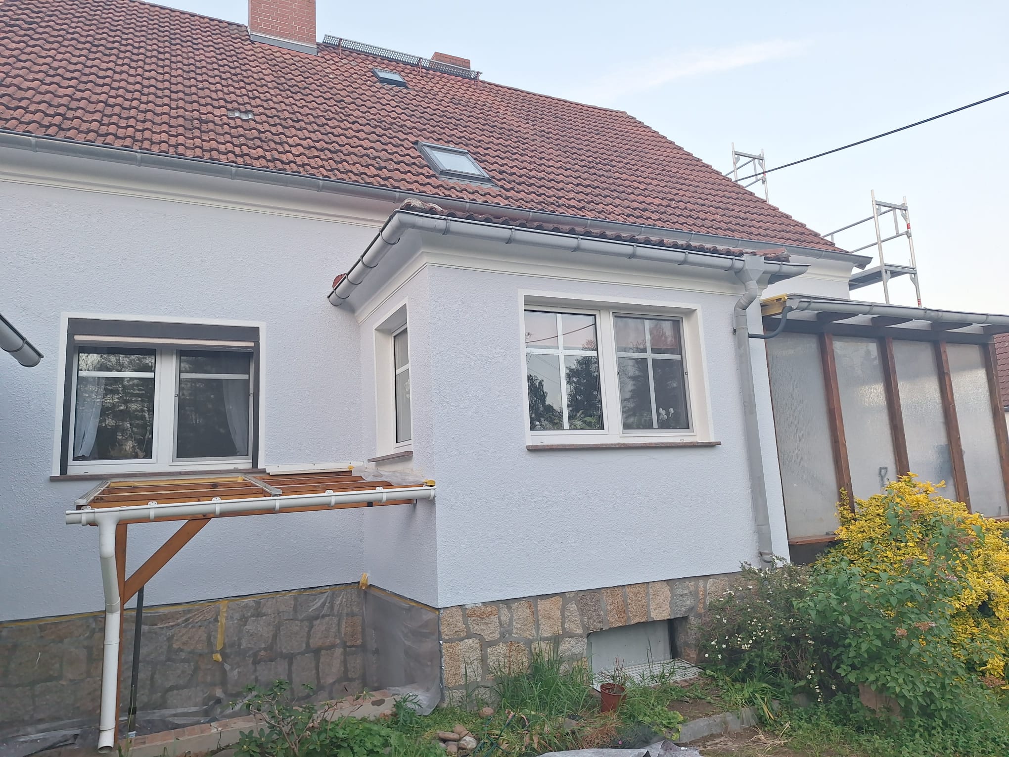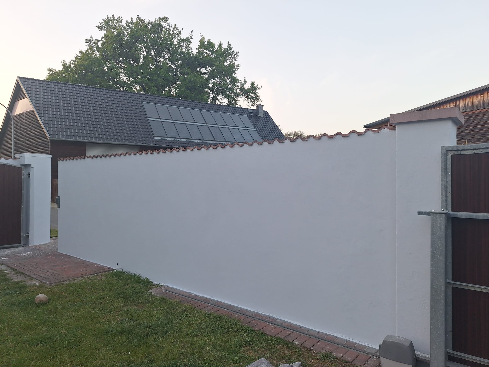 - Mauer: verputzen mit Filz- und Sanierungsputz mit anschließenden Anstrich silikonfassadenfarbe